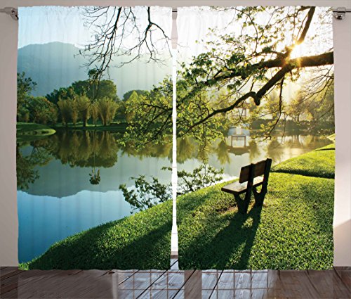 reddit Ambesonne Nature Curtains, Wooden Chair at Lake Garden Park Serene Calming Environment Fresh Land Picture, Living Room Bedroom Window Drapes 2 Panel Set, 108 X 84, Green Blue